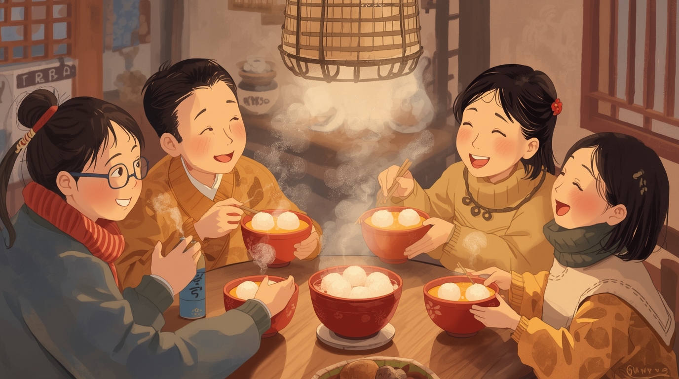 Di wilayah selatan, hidangan khas Dongzhi adalah tangyuan. Tangyuan merupakan bola-bola ketan yang disajikan manis, dengan isian seperti wijen hitam atau pasta kacang merah. Bentuknya yang bulat melambangkan keutuhan dan keharmonisan keluarga. Dalam bahasa Mandarin, pelafalan tangyuan juga dikaitkan dengan makna reuni, sehingga makanan ini menjadi simbol kebersamaan.